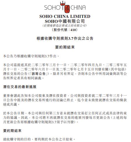 Soho 中国港股股票本周二已暂停交易,以待根据《香港收购及合并守则》而作出的公告 。 彭博社随后报道称,新冠疫情导致公司前景充满不确定性,黑石集团关于 soho 中国私有化的洽谈陷入停滞状态。 soho中國. See more of soho china on facebook.